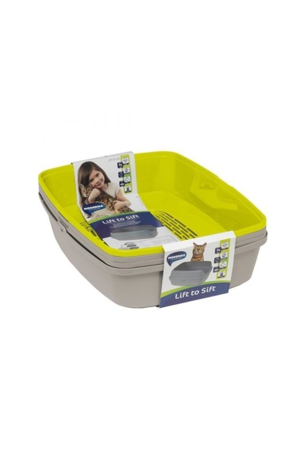 Moderna 4 Katlı Elekli Kedi Tuvaleti Gri-Sarı 43x57x27 cm